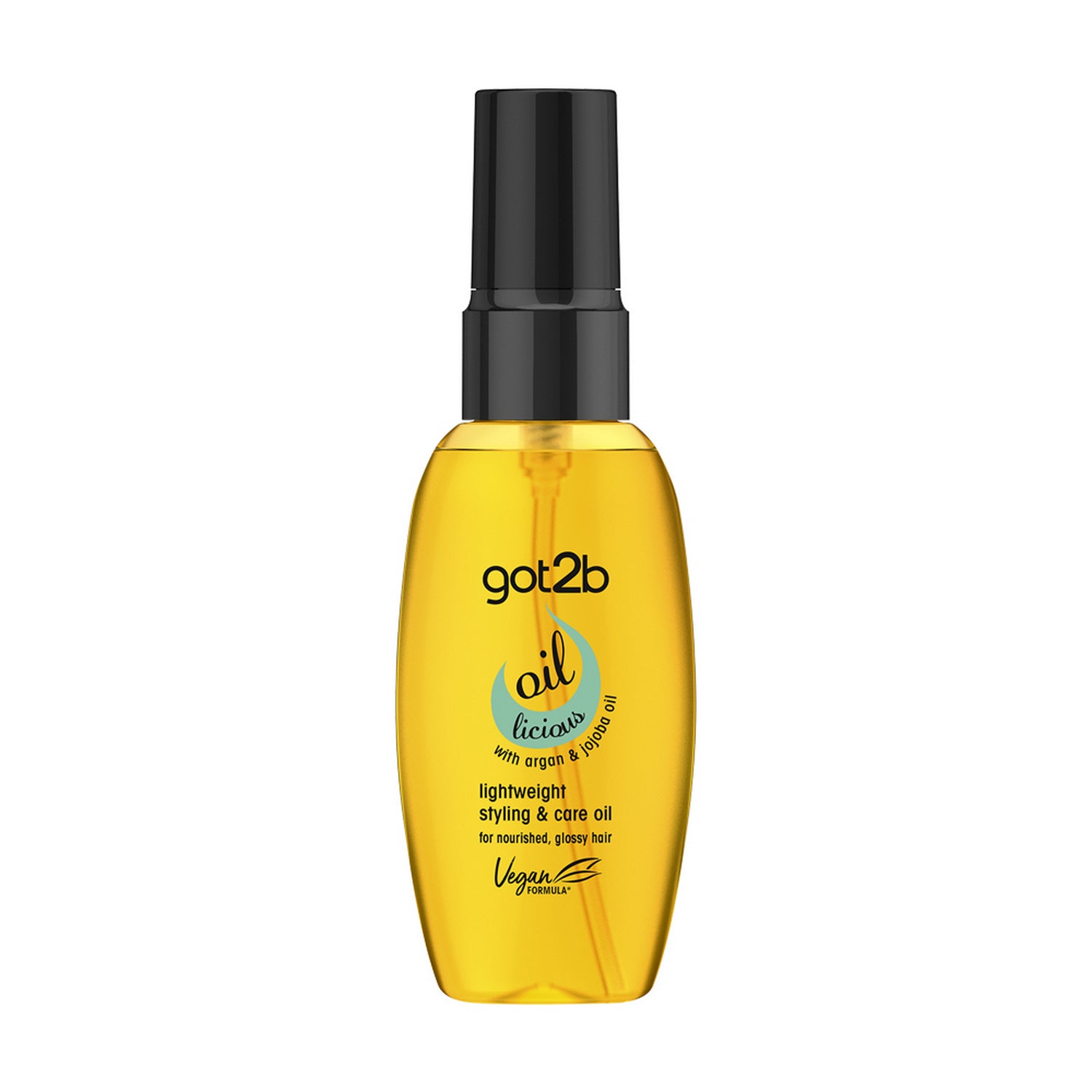 got2b Oil-licious Styling Oil 50ml is an easy to use hair styling oil designed to reduce frizz and leave your hair looking sleek, shiny and feeling well nourished. Vegan and containing argan oil, the non-greasy formula has a beautiful subtle tropical fragrance and a lightweight consistency. It absorbs instantly into your hair and cares for your ends.
