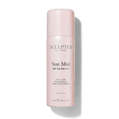 Sculpted by Aimee Sun Mist is an ultra-lightweight, invisible facial mist that offers broad spectrum SPF 50 PA+++ protection. Perfect for on-the-go use, it can be applied both under and over makeup, making it an essential daily shield for UV defence and hydration.