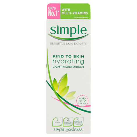 Simple Kind to Skin Hydrating Light Moisturiser is made with a lightweight and fast-absorbing formulation, to keep your skin feeling soft, smooth and perfectly hydrated for up to 12 hours. Did you notice that this bottle of face moisturiser is a little darker than usual? It's because it's made from recycled plastic! Simple's face moisturiser is made with skin-loving ingredients such as Pro-Vitamin B5 and Vitamin E and contains no artificial perfumes, colours, no alcohol or harsh chemicals that can upset your skin. Dermatologically tested and approved, this hydrating moisturiser is perfect for all skin types, even the most sensitive skin, as it is hypoallergenic and non-comedogenic (it doesn't clog pores). Kind to Skin Light Moisturiser is vegan and Simple is certified cruelty-free by PETA, meaning they don't test on animals anywhere in the world. They believe in continuously working to be kinder to the planet.