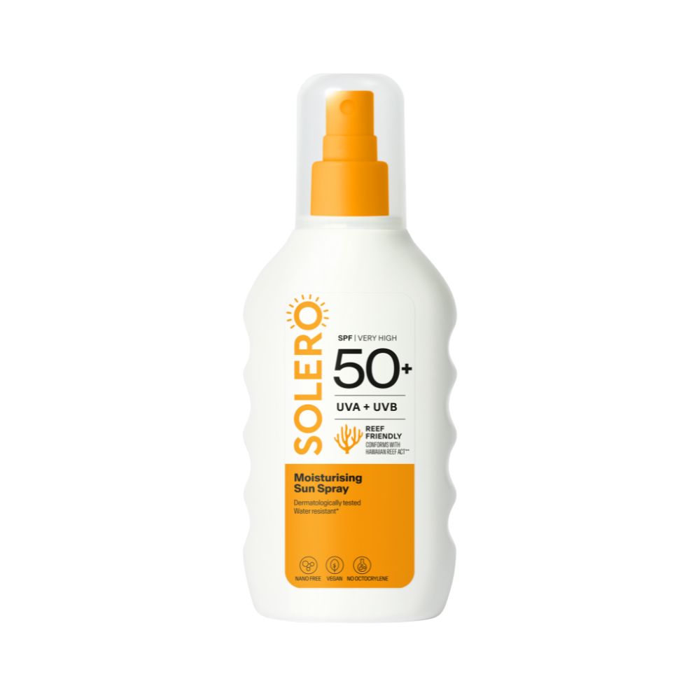 Solero Moisturising Sun Spray SPF 50+ is vegan, reef-friendly, and free from octocrylene and nanoparticles—ensuring safe and effective sun care for you and the environment.