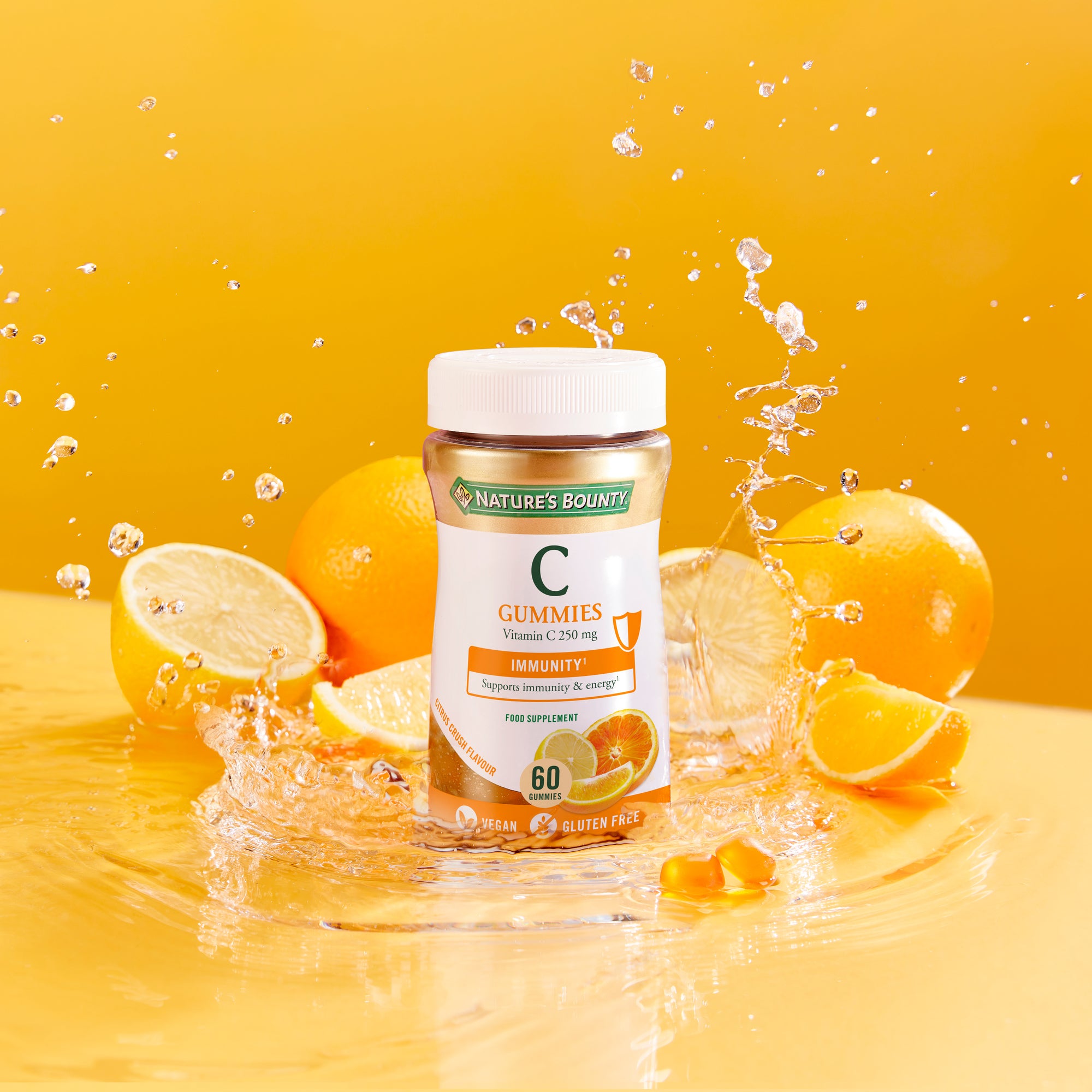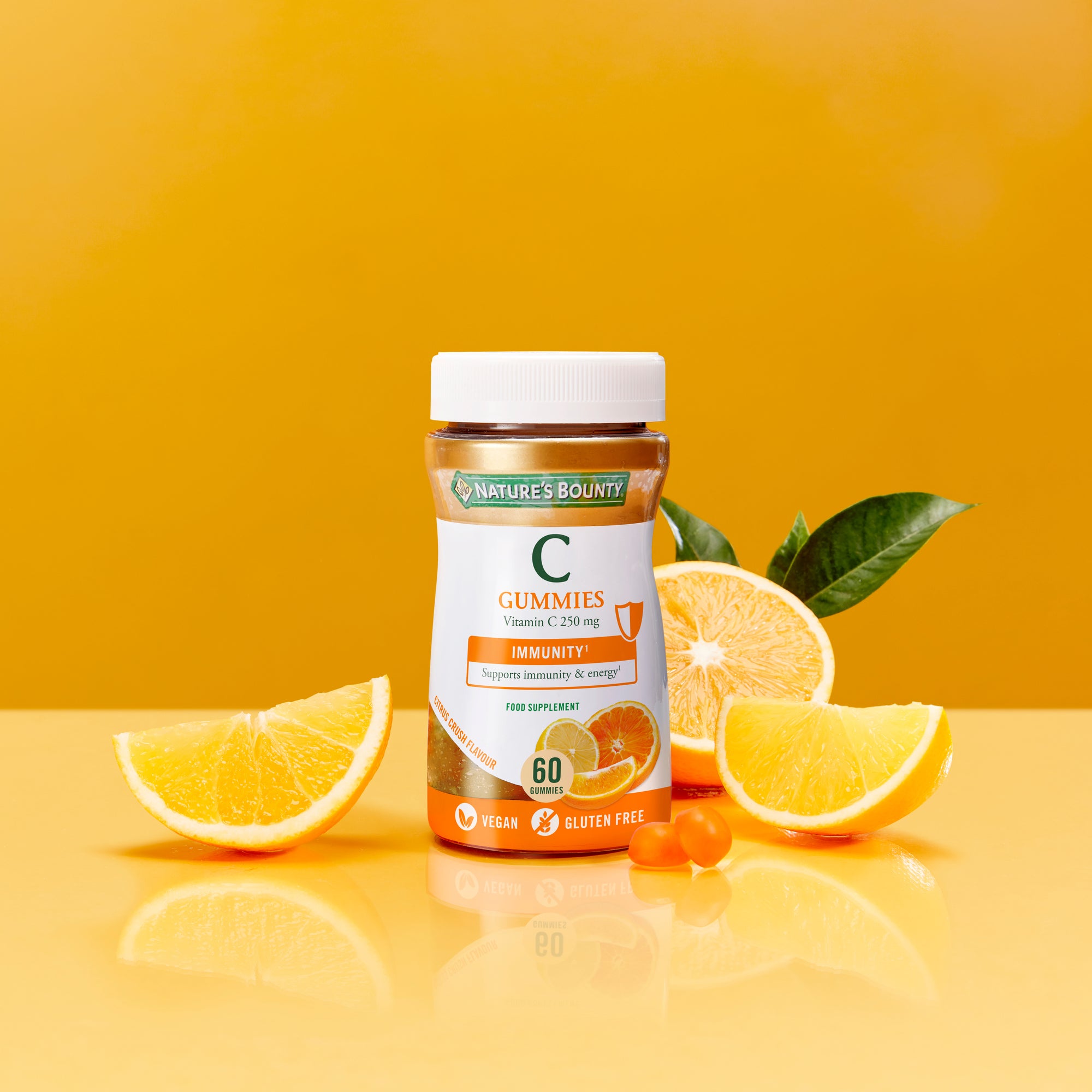 We've developed Nature’s Bounty® Vitamin C Gummies because we know that a well-functioning immune system is vital for good health - and Vitamin C plays a crucial role. Vitamin C is a water-soluble vitamin that we cannot make ourselves, so it is essential to keep it topped up daily from dietary source. Did you know, as well as supporting immune health and maintaining energy levels, vitamin C helps protect the body from oxidative stress caused by free radicals. Our tasty citrus flavoured Vitamin C gummies are a great way to support your body's immune system in an easy-to-take, vegan friendly supplement. Our yummy citrus crush flavour is made with orange & lemon; and the gummies are suitable for children from 5 years old (Limit to 1 per day).