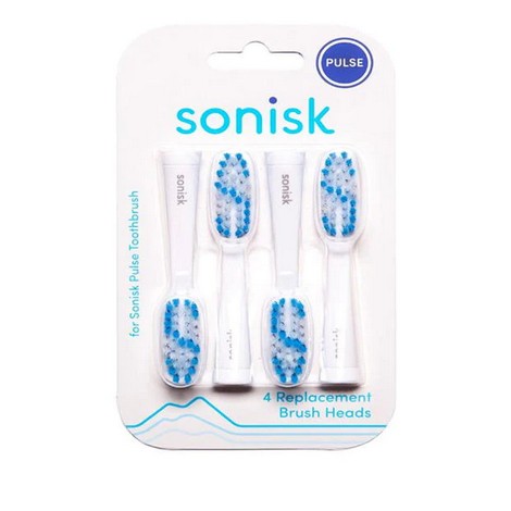 The Pulse toothbrush replacement pack includes four new toothbrush heads that easily twist and click into place for your Sonisk Pulse Toothbrush, allowing toothbrush heads to be changed with ease.