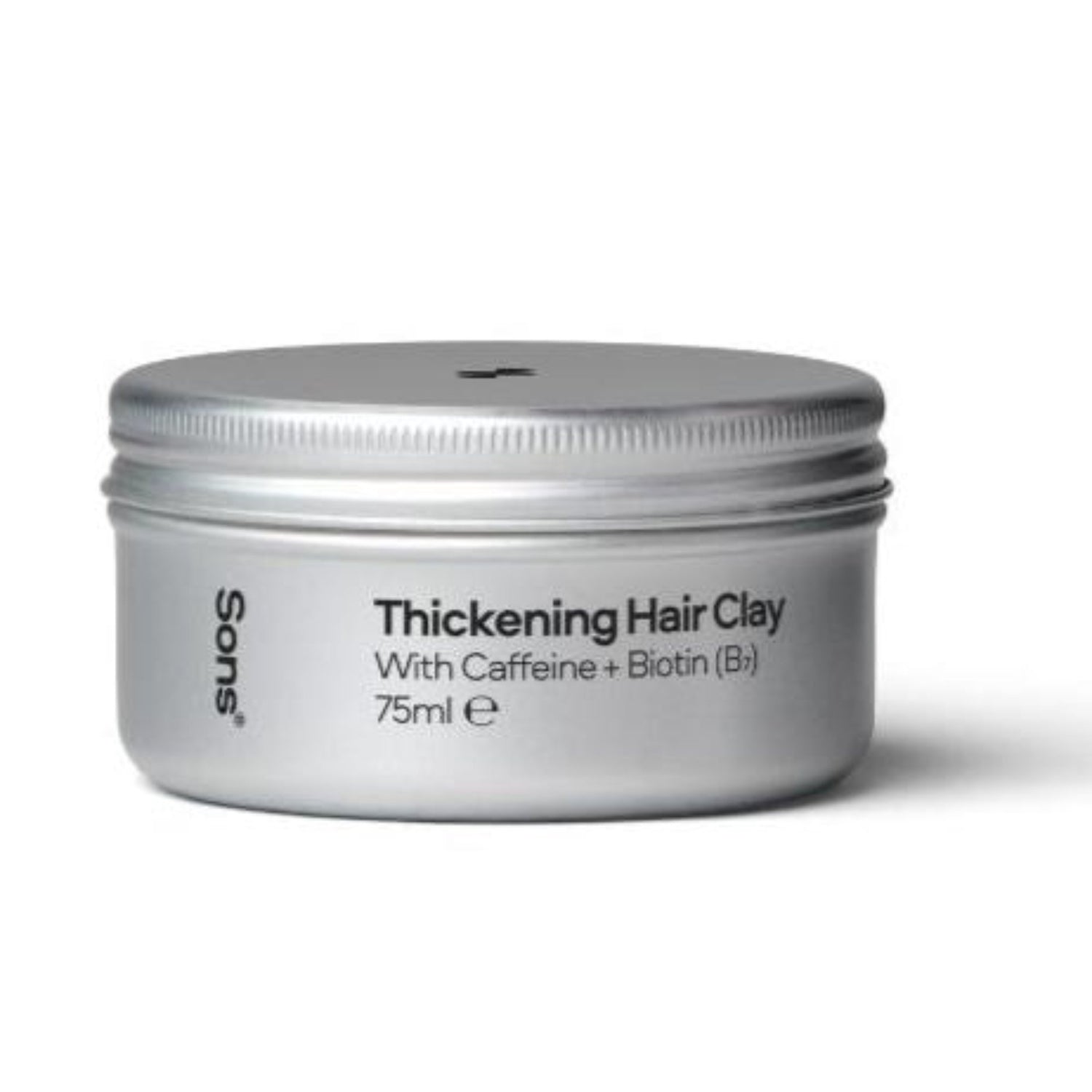 Achieve a fuller, more voluminous look with Sons Thickening Hair Clay, a nourishing styling cream designed to strengthen your hair from the roots. This reworkable medium-hold clay provides a natural matte finish, perfect for all-day style and flexibility.