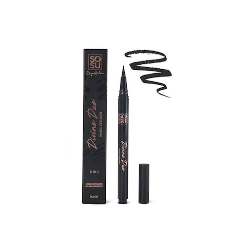 Lash Glue & Eye Liner Pen in ONE - say hello to SoSu's Divine Duo Magic Eyeliner. This innovative 2-in-1 jet black liquid eyeliner doubles as a powerful eyelash adhesive for quick & easy lash application – with no mess and no fuss!