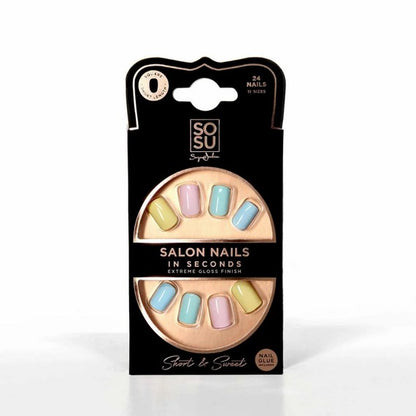 Cruelty-Free & Vegan Friendly Each packet includes 24 nails in 12 sizes, adhesive, mini nail file, manicure stick and has an extreme gloss finish.