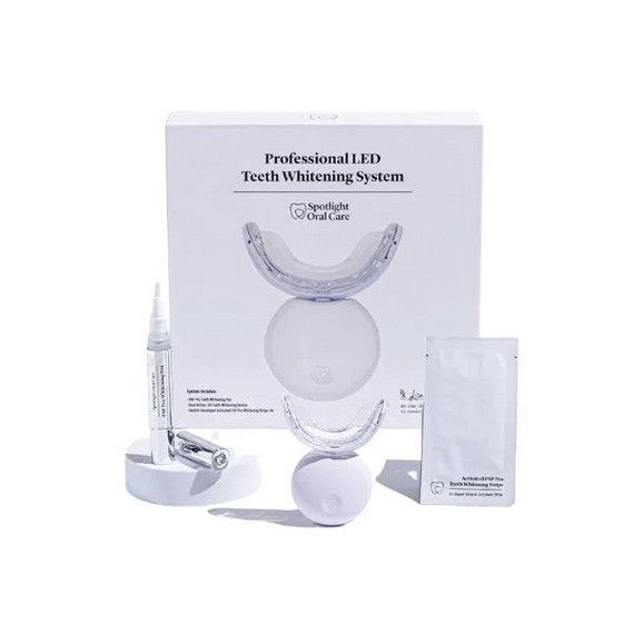 - Once the strips are on, place the LED Teeth Whitening Device in your mouth.