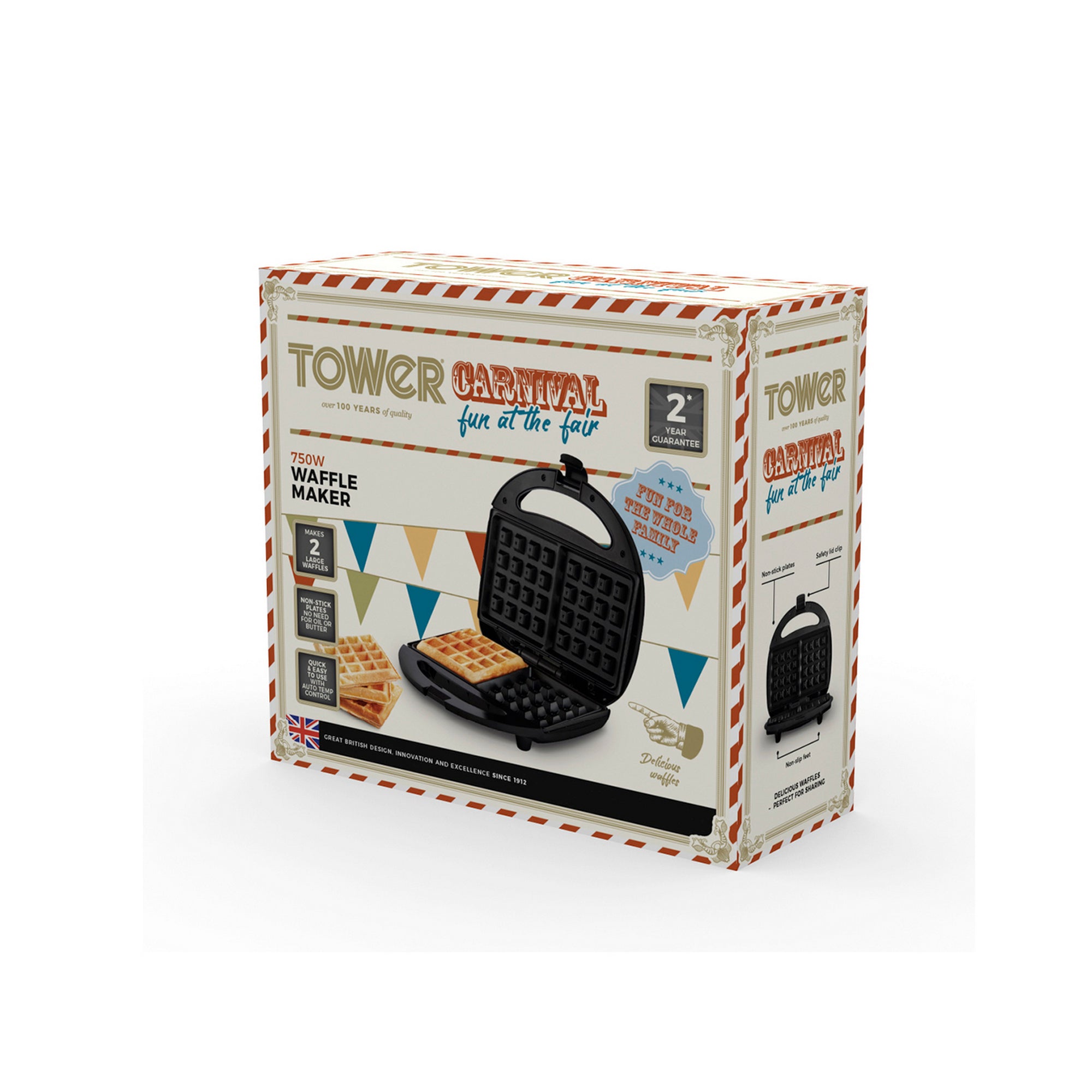 Create light, fluffy waffles at home in no time with the Tower 750W Waffle Maker. Perfect for breakfast, brunch, or an anytime treat, this compact appliance makes 2 large waffles at once – ideal for sharing with family and friends.