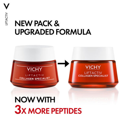 Target signs of ageing linked to collagen loss with Vichy Liftactiv Collagen Specialist Day Cream. Our most advanced anti-wrinkle moisturiser helps to boost skin's collagen production while defining skin contours and bringing a more even skin tone for a healthy, radiant glow.