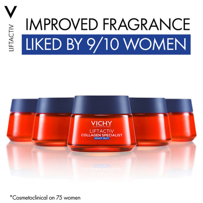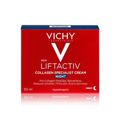 Use Vichy Liftactiv Collagen Specialist Night Cream every evening, after your serum and eye care.