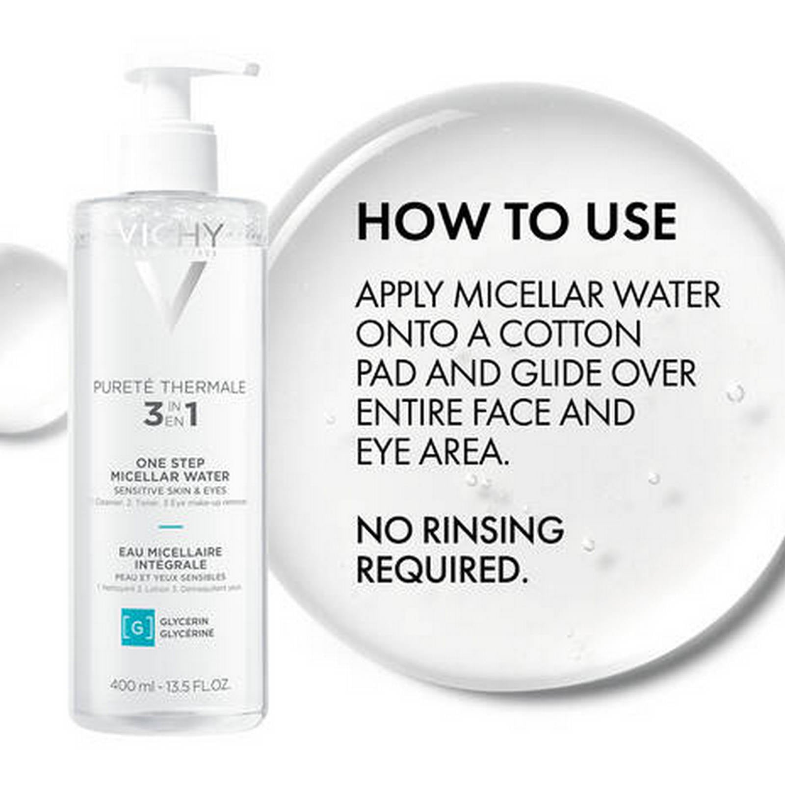 A mineral micellar water formulated for sensitive skin to effectively remove impurities and waterproof make-up in one easy step. The gentle solution cleanses the skin’s complexion with a formula based on micellar technology leaving the skin feeling hydrated, soothed and texture feels refined. Vichy Volcanic Water, a mineral-rich water sourced from the French Volcanoes, strengthens the skin’s barrier function to protext against external aggressors. The skin feels smooth, with the complexion appearing brighter and refined. Suitable for sensitive skin. Non-comedogenic.