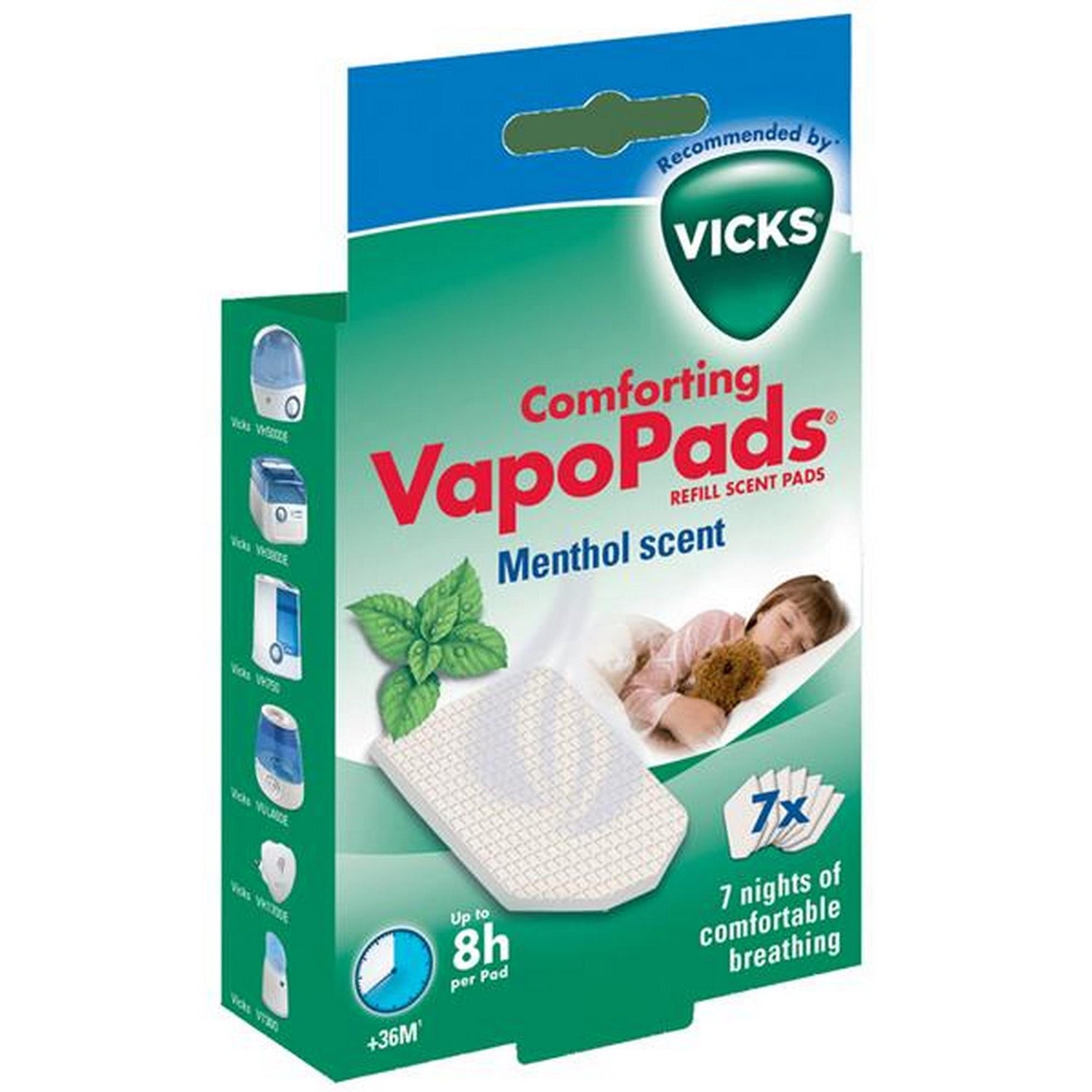 Vicks Comforting VapoPads are a refill of essential oils for your Vicks Comforting Vapours Plug-In, which helps to reduce the discomfort of coughs and colds and the only Plug-In to offer the safe signature of the Vicks natural scent. With its well-known protective Vicks shield form, the Comforting Vapours Plug-In is easy to use. Simply insert a Vicks scented VapoPad into the Comforting Vapours Plug-In and plug it into a power socket. The heat activates the natural essential oils and releases their vapours into the air. A single scent pad will give up to 8 hours comfort and wellbeing. The Plug-In also glows softly, becoming a nightlight to help to ease the path to a good night’s sleep.