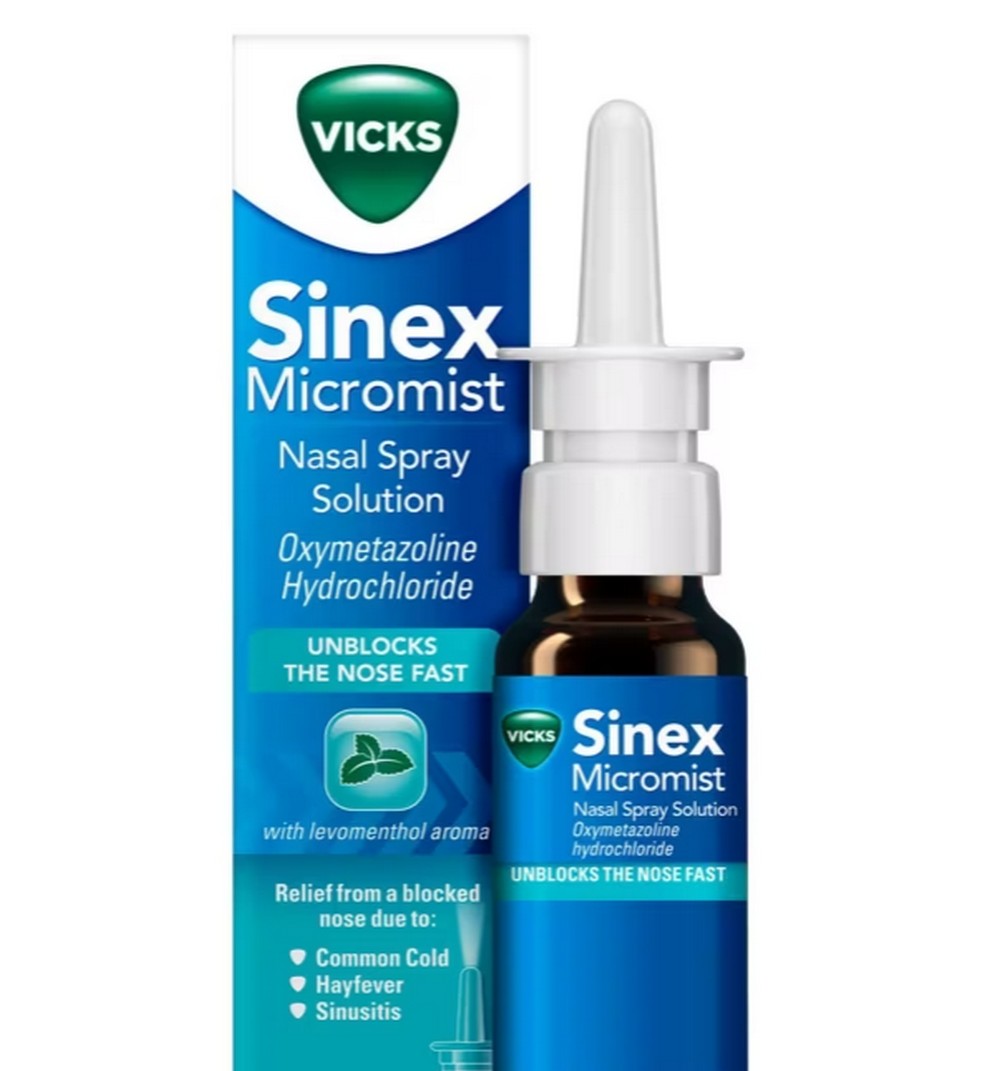 Vicks Sinex Micromist is a nasal spray is used for the treatment of systoms associated with a cold, hay fever or sinusitis (inflammation of the passages leading to the nose).