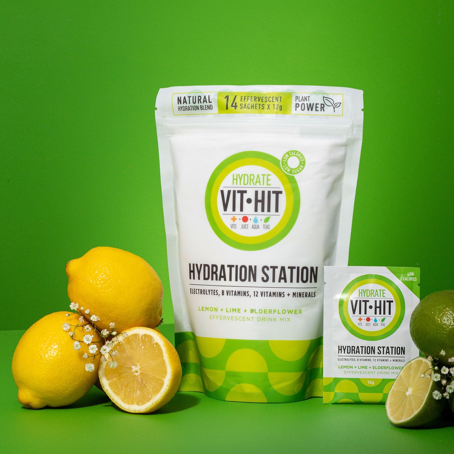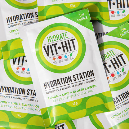 A mouthwatering lemon, lime & elderflower effervescent drink mix. Designed by top food scientists. VITHIT Hydration station is a refreshing blend of delicious lemon and lime with a hint of elderflower fused with 8 essential vitamins and 4 minerals.