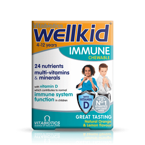 Wellkid Immune Chewable tablets have been produced with children's specific needs in mind to provide a comprehensive range of 24 nutrients to help safeguard your child's nutritional intake. They come in a great tasting, natural orange & lemon flavour.