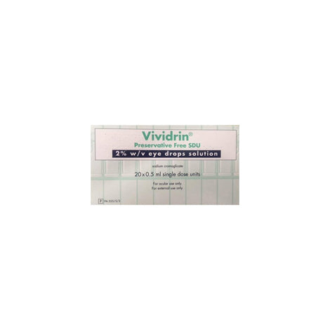 Treats eye allergies including: short and long term allergic conjunctivitis, more severe cases of conjunctivitis (vernal kerato conjunctivitis). Also suitable for treatment of allergic reactions such as itchy, watery, red or inflamed eyes and puffy eyelids. The Vividrin SDU Eye Drops contain 20 single dose vials of 0.5ml.
