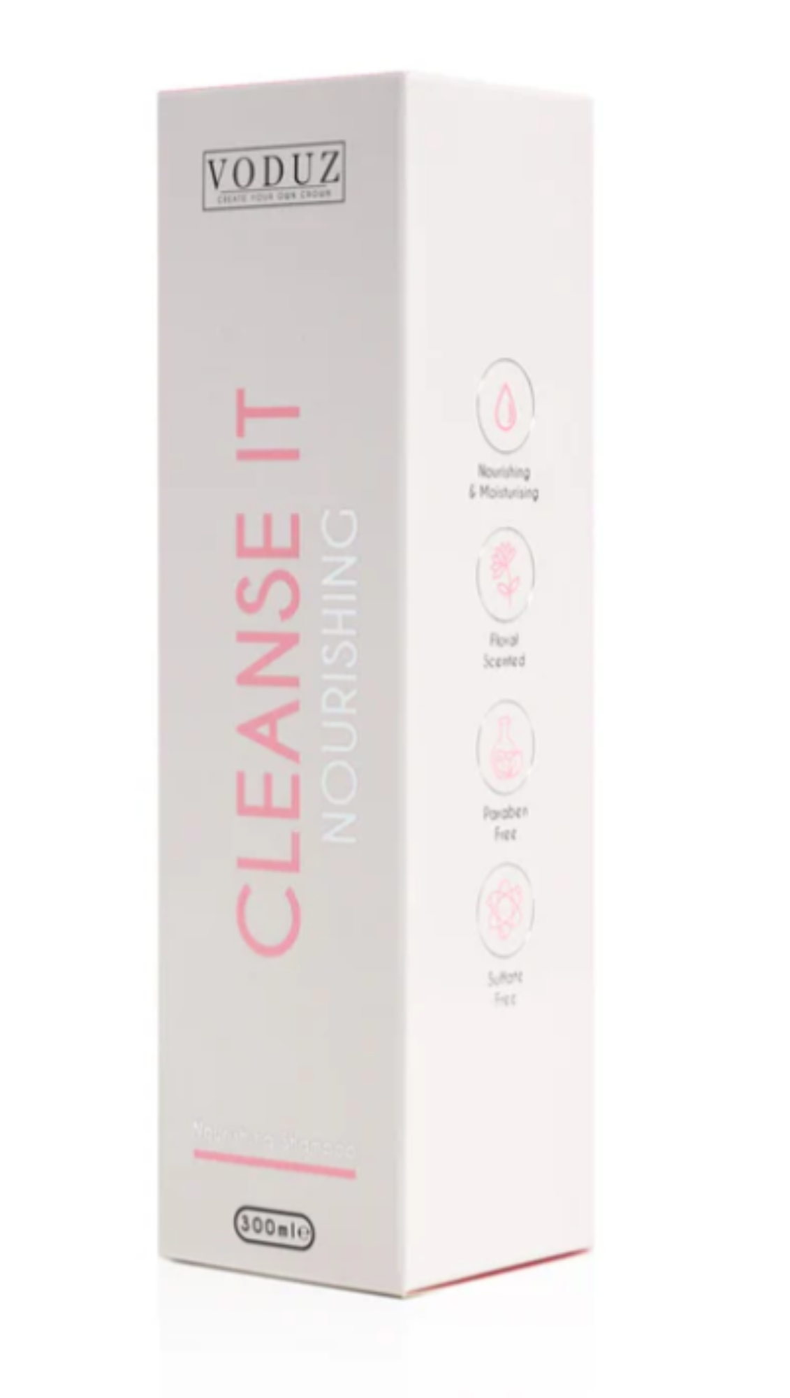 Voduz Cleanse It Nourishing Shampoo will cleanse the hair and scalp and help to replenish the hair with the help of natural sugars. Our shampoo will provide antioxidant properties and a UV filter to keep your hair in great condition.