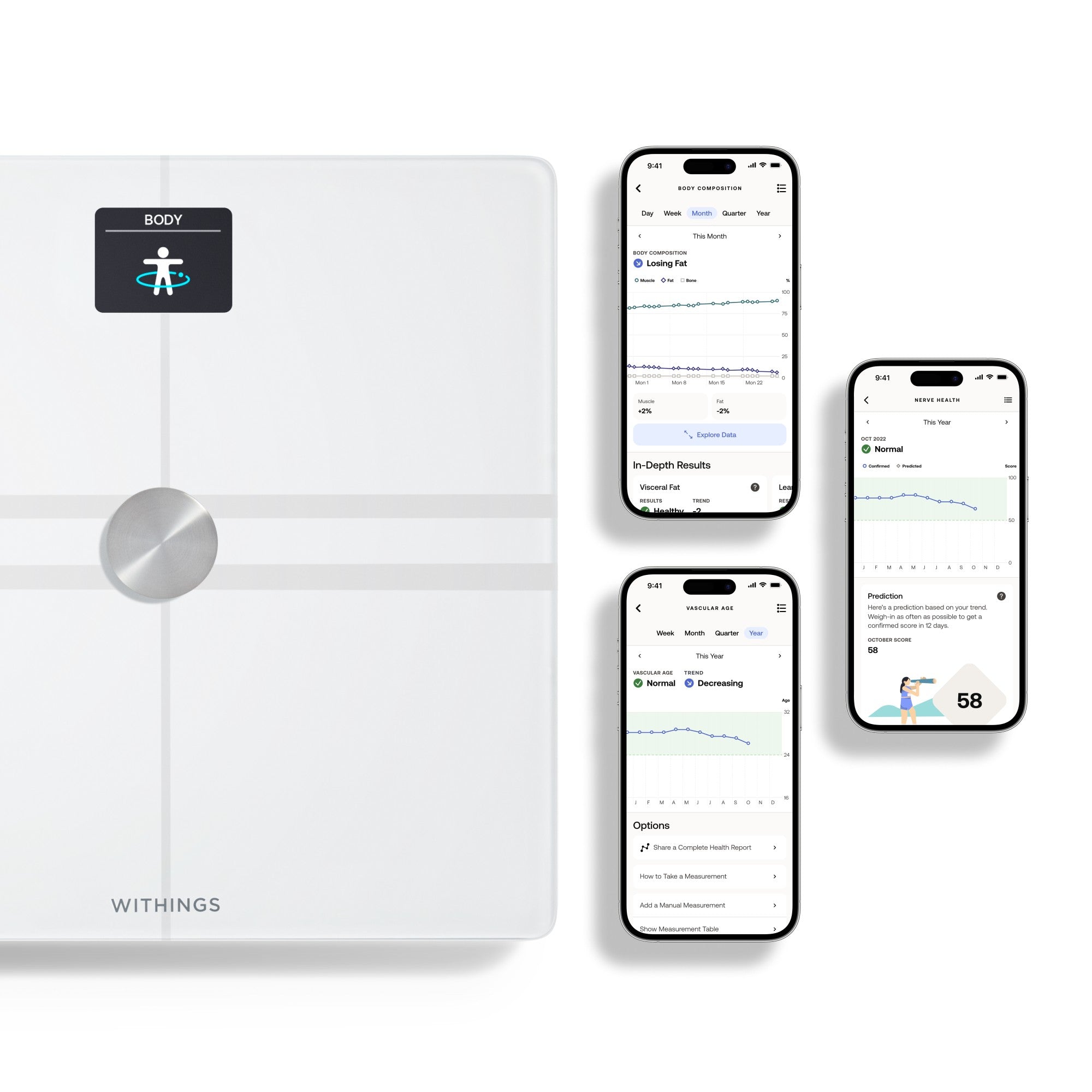 Embrace the Withings Scale Experience, and seamlessly integrate better health into your daily life. Body Comp features a 15-month battery life, a high-resolution colour screen, and automatic tracking for multiple users. Plus, explore dedicated modes for pregnancy, babies and athletes. Enjoy Wi-Fi or Bluetooth connectivity and sync all your health data directly to our highly-rated app. View trends, progress, and daily inspiration for long-term improvement. Thanks to best-in-class data privacy standards, your data is always secure.